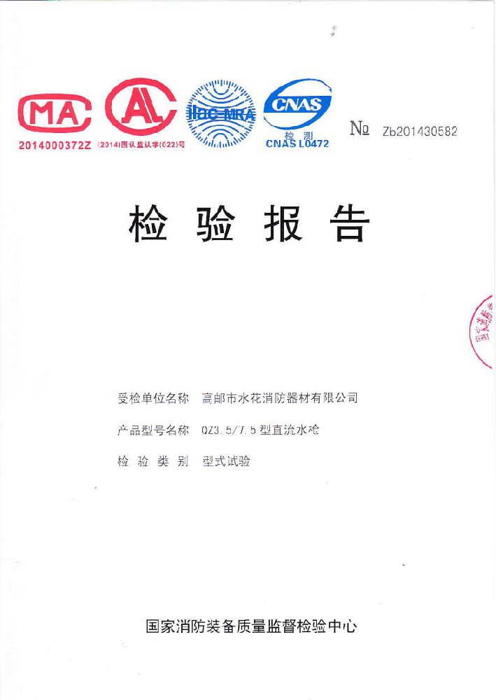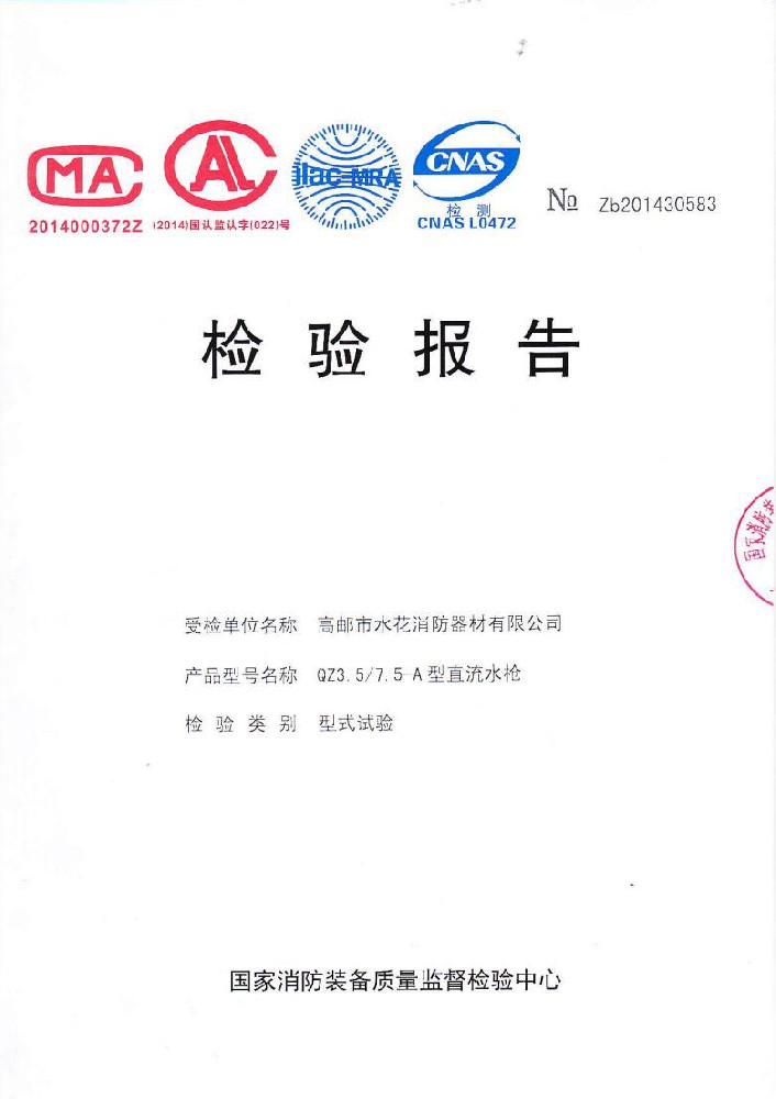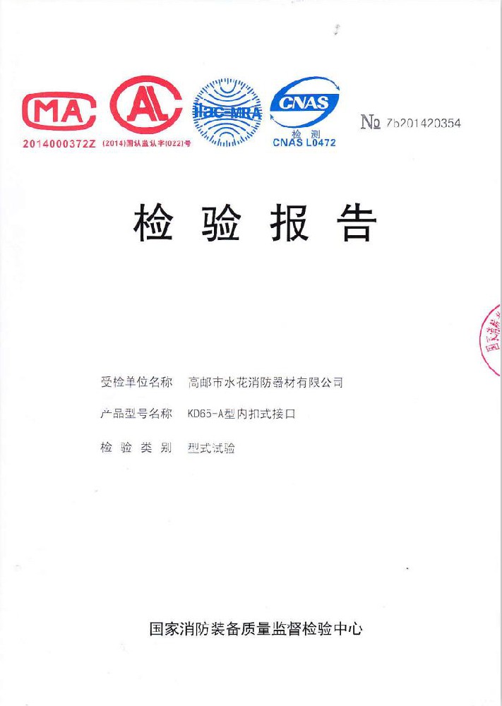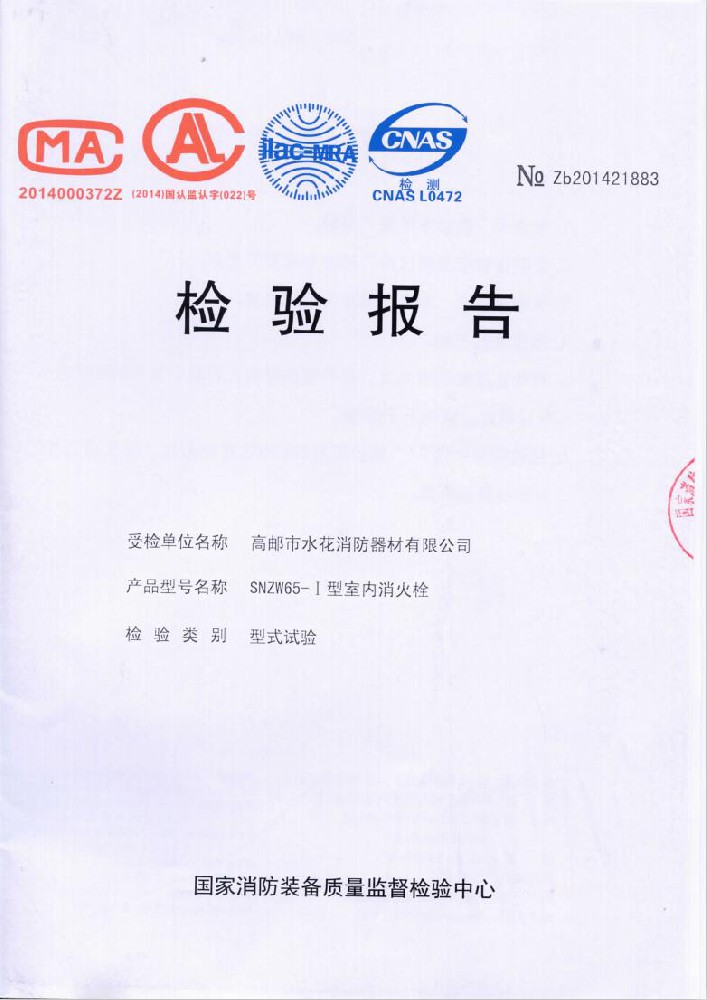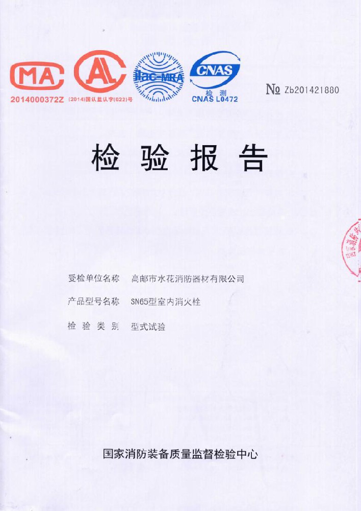 我廠創(chuàng)辦于一九七六年六月,現(xiàn)有職工600人,其中各類技術(shù)和管理人員68人。擁有固定資產(chǎn)5000萬元,占地面積35000多平方米,建筑面積25000多平方米。建立了完善的質(zhì)量體系,取得多種“計量合格確認證書”,并成為江蘇及多省的消防協(xié)會會員單位。工廠技術(shù)力量雄厚,生產(chǎn)和檢測設(shè)備齊全,工藝先進。生產(chǎn)“水花”牌水帶接口: KDK65, KD65,KY65,KN65。消防水槍: QZG3.5/7.5, QZ3.5/7.5,QP8/0.7Z泡沫水槍。室內(nèi)消火栓: SN65, SNW65-I,SNZ65, SNZW65-I。 消防軟管卷盤JPS0.8-19/25。生產(chǎn)的“郵花”牌,消防有襯里水帶:65-8、10、 13、 16、20、 25型; 80-16、 20、25型。水帶接口: KD50、65; KY50、65;KN65。消防水槍: Q2Z3.5/7.5、 5。 室內(nèi)消火栓: SN65, SNW65-I, SNZ65, SNZW65-I。 并于二零一五年五月通過公安部消防產(chǎn)品合格評定中心3C換版檢驗,獲得以上產(chǎn)品所有的強制認證證書,準(zhǔn)予生產(chǎn)和銷售,產(chǎn)品行銷全國各地,深受廣大用戶好評。
